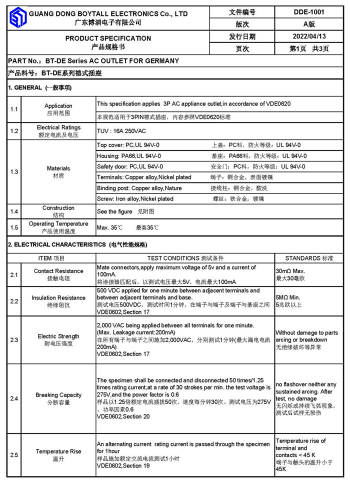 Your current location > Home > Product list- German socket series - BT-DE-1B